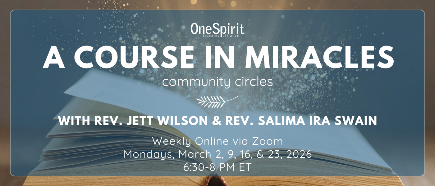 In small, intimate Circles of no more than 12-15, guided by One Spirit Alumni, Rev Jett Wilson and Rev Yolanda Maples, you’ll explore the living teachings of A Course in Miracles not as theory, but as a path that moves through your relationships, your choices, your fears, your longing, your everyday life.