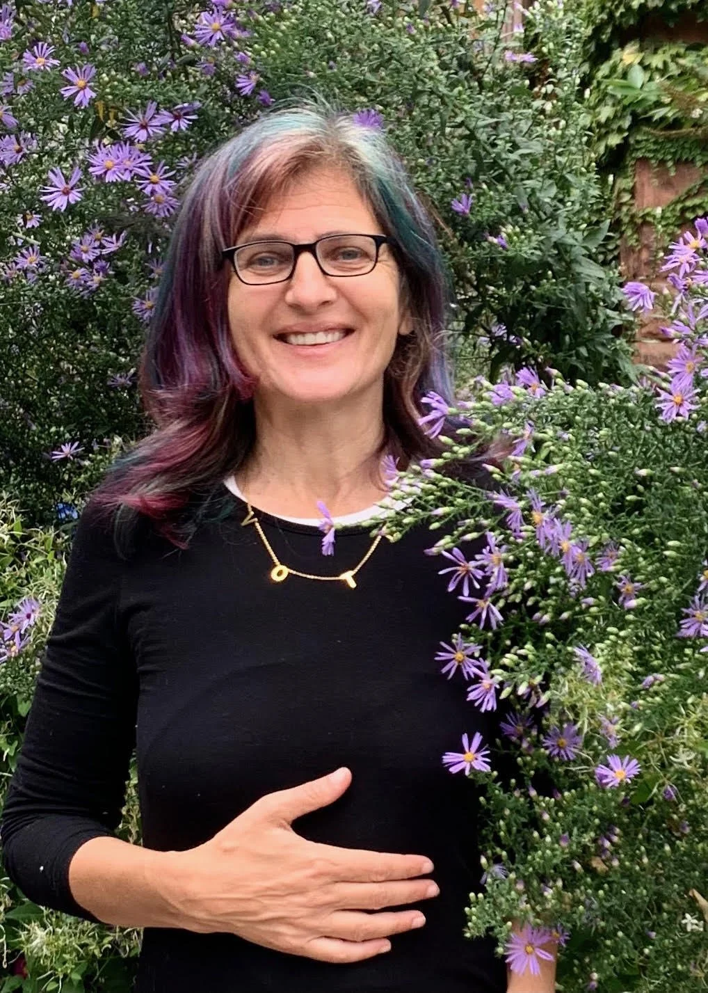 Wendy Jo lives in Brooklyn, NY (Lenape) with her gardener Partner, David (aka the Tulip King), his mom, and a diverse constellation of birth and chosen family.